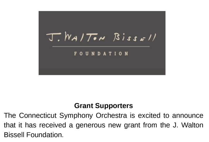 With this generous grant, the CSO is able to remain committed to our mission to provide affordable, high quality classical music performances to our audiences in the Greater Hartford area.